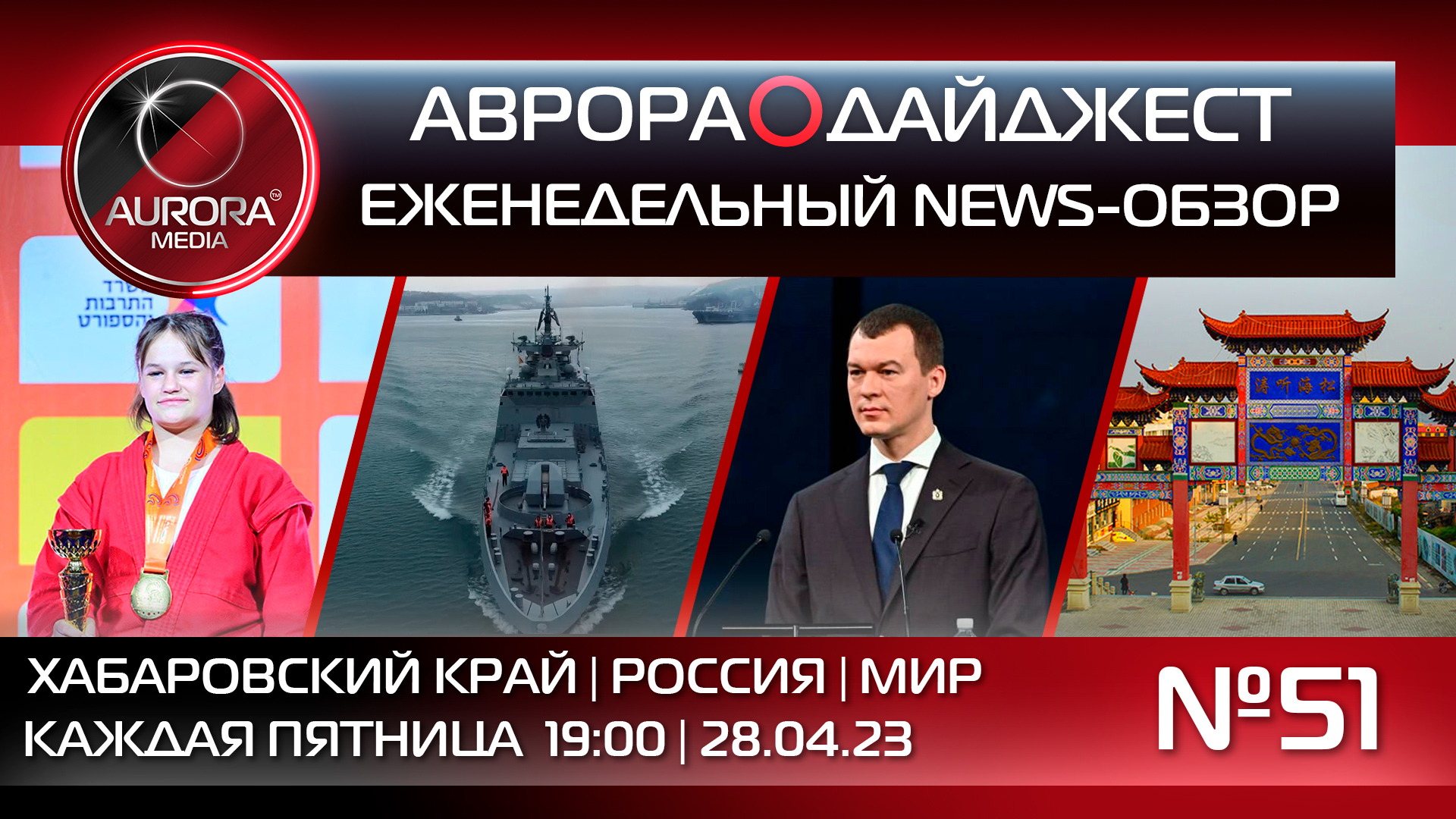 51-й еженедельный новостной видео-разбор АВРОРА⭕ДАЙДЖЕСТ, сделанный Редакцией в формате: Хабаровский край | Россия | Мир, с ключевыми региональными, российскими и международными событиями: НОВОСТИ ХАБАРОВСКОГО КРАЯ: - Губернатор Хабаровского края Михаил Дегтярев выступил перед депутатами Законодательной Думы с отчетом о работе регионального правительства за 2022 год. - В регионе в этом году снова появятся "Сады памяти". - Хабаровский край успешно защитил стратегию развития промышленного туризма в Москве. - В крае стартовала акция «Посылка солдату к 9 мая от жителей Дальнего Востока». - При поездках в китайский Фуюань российские граждане смогут оформлять визы по прибытии. - В регионе намерены за три года обновить десять речных судов. - В Комсомольске-на Амуре ждут лётных испытаний первого SSJ-100 второго поколения. - В крае запустят Госфонд для участников СВО в течение месяца. - Хабаровчанка завоевала «золото» Чемпионата Европы по самбо. НОВОСТИ РОССИ И МИРА: - Атаки Киева на черноморский флот ставят под угрозу продление зерновой сделки. - Правительство внесло в Госдуму законопроект о повышении НДФЛ для уехавших за границу россиян. - Порядка трех тысяч человек эвакуировали в Белгороде из-за авиабомбы. - Из украинского плена удалось освободить 40 российских военных. - Совет федерации одобрил несколько законопроектов. - Южная Корея расширила экспортные санкции против России. - Президент Чехии заявил, что Китаю выгодно затягивание конфликта на Украине. - Украинский генерал рассказал, что у Киева никогда не будет достаточно людей и техники. - Си Цзиньпин провёл телефонный разговор с Владимиром Зеленским.