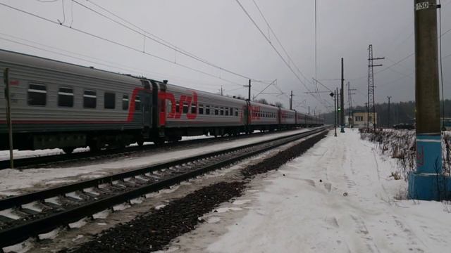 ЭП20-014 с поездом №9 Москва-Брянск, платформа Рассудово, летит под 120