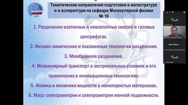 НАНОЧАСТИЦЫ ДЛЯ МЕДИЦИНЫ Харин Александр Юрьевич – доцент, Рассказ о методах синтеза и применения наночастиц для медицинских применений 10:00 — 10:30 Современные достижения и направления развития молекулярно-селективных технологий и физики нелинейных явлений и процессов Алексеев Константин Павлович В лекции дается краткий обзор современного состояния физики процессов и явлений, лежащих в основе молекулярно-селективных технологий, а также физики нелинейных процессов С 11:00 – 12:00 Презентация АПК «Караван» Клоков Владимир Александрович Презентация АПК «Караван» Комплексное техническое решение, обеспечивающее контроль и защиту проводных управляющих шин CAN, FlexRay и контроль и защиту радиоэфира сетей связи Bluetooth, GSM, 3G, LTE, Wi-Fi Компетенции ИЦ НИЯУ МИФИ С 14:00-15:00 Презентация «Гранит» Клоков Владимир Александрович Презентация аппаратно-программного комплекса контроля Wi-Fi сетей С 14:00-15:00 Презентация «Портативный считыватель» Клоков Владимир Александрович Презентация Модуля выявления, идентификации и сбора данных с RFID меток С 14:00-15:00 Презентация «Тирекс» Клоков Владимир Александрович Презентация устройства радиопеленгации абонентов мобильных устройств, использующих сотовые стандарты связи GSM, 3G, LTE или терминалы DMR, TETRA Радиопеленгация с одного устройства используется для определения направления изучаемого объекта С 14:00-15:00 «TIREX-GPS» Клоков Владимир Александрович Презентация «TIREX-GPS» С 14:00-15:00 ШКОЛЬНЫЙ ПРОЕКТ ЮНИОР «ЯДЕРНАЯ БАТАРЕЙКА» (ПРОТОТИП) Борисюк Петр Викторович Представлены результаты по разработке макета радиоизотопного источника энергии для удаленных объектов. Описаны концепция и основной принцип создания подобных источников энергии, а также представлены технические расчеты и собран макет для исследования функциональных свойств прототипа радиоизотопного источника питания на основе тепло-фотоэлектрического преобразования энергии ядерного распада радиоактивных нуклидов. Расчеты выполнены для радионуклида плутоний-238. 15:00 — 15:45