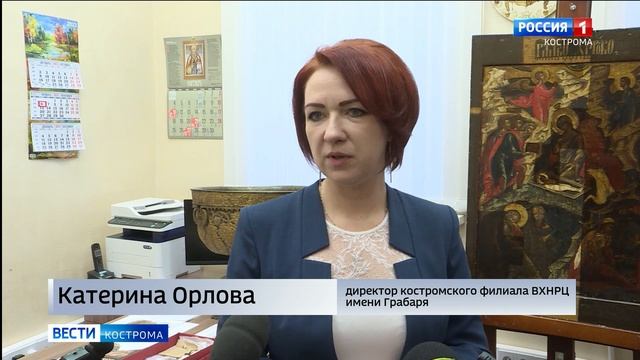 Это иконы из церкви Иоанна Предтечи, которая знакома россиянам по тысячерублевой купюре. А также уникальная водосвятная чаша 17 века и одна из двух известных в мире икон из финифти. Экспонаты поступили в Костромской филиал реставрационного центра имени Грабаря из Ярославского-музея-заповедника.