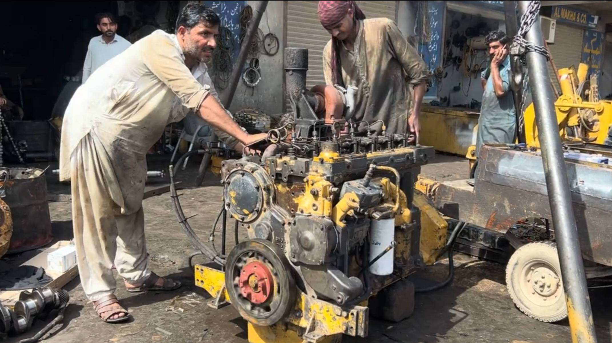 Рукастые пакистанцы "на коленках" чинят турбодизель Caterpillar #2