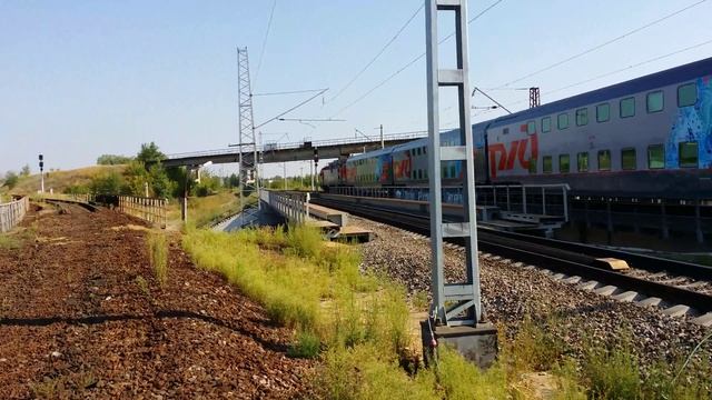 ЭП20-013 с поездом №103 Адлер-Москва двухэтажный олимпийской раскраски прибывает на ст. Россошь