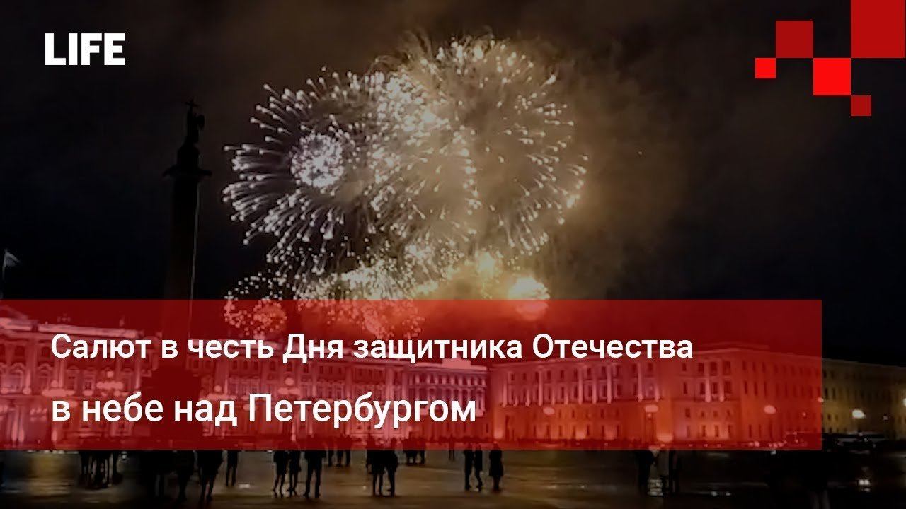 Салют в честь Дня защитника Отечества в небе над Петербургом