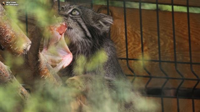 Манул Пепе забрала все куриные крылья и съела их. Барнаульский зоопарк