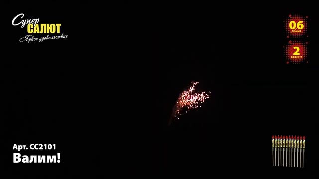 Ракеты Валим (6ШТ.) СС2101 https://spb-salut.ru/products/rakety-valim Количество в упаковке: 6 шт. Калибр: 0,6. Высота подъема до 15 м. Эффекты: золотая комета раскрывается зеленым мерцающим букетом; золотая комета раскрывается серебряным мерцающим букетом; золотая комета раскрывается облаком золотых трещащих звезд; золотая комета раскрывается красным мерцающим букетом; золотая комета раскрывается трещащим букетом; золотая комета раскрывается золотым мерцающим букетом. Фасовка: 1/72/6. SPB SALUT - пиротехническая компания в Санкт-Петербурге. Основные направления деятельности: 1) Розничная торговля пиротехникой (офлайн магазины, интернет-магазин spb-salut.ru); 2) Организация и проведение профессиональных фейерверков; 3) Оптовая торговля пиротехникой по всей России. Адреса магазинов: 1) г. Санкт-Петербург, ул. Тележная, д. 15, лит. Б (вход с ул. Кременчугская), м. Площадь Восстания. Ежедневно с 10:00 до 22:00 2) г. Санкт-Петербург, пр. Полюстровский, д. 28Б, м. Площадь Ленина. Ежедневно с 10:00 до 22:00 Благодаря большому опыту, наши специалисты с легкостью создадут для Вас уникальное фейерверк шоу, которое сделает любой Ваш праздник незабываемым, будь то день рождение, свадьба, корпоратив или фейерверк городского масштаба! Почта: info@spb-salut.ru Сайт: https://spb-salut.ru Тел.: +7(812)242-82-24; +7(952)287-80-85.