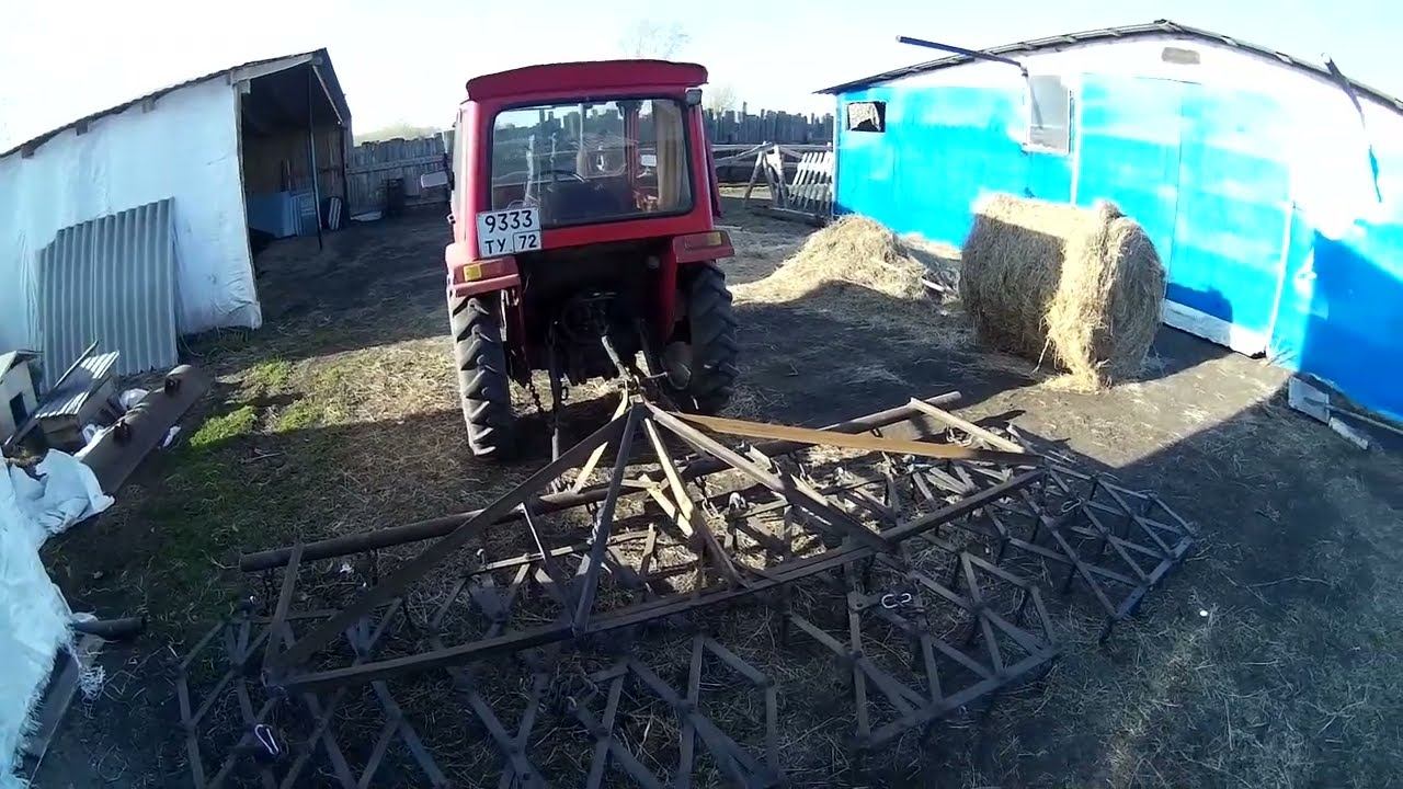 Четыре бороны на минитрактор. Новая навесная сцепка для борон. Бороню сенокос, навоз и огороды.