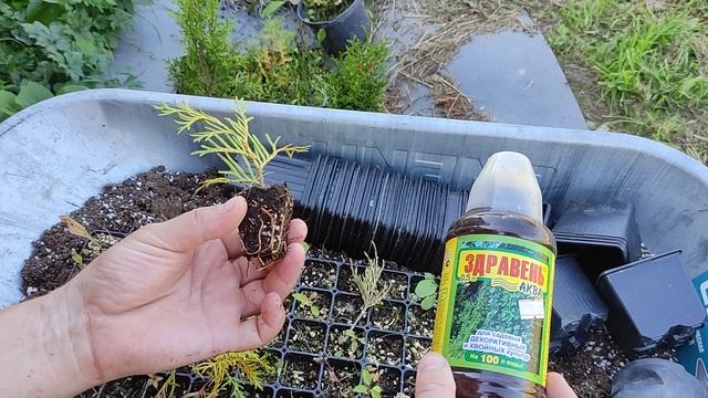 Пересадка черенков туи смарагд из кассеты в П9 в 2025 году. 🌲