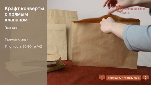 Конверты крафт - большой выбор размеров. Клапан не имеет клей. Информация на нашем сайте: http://www.pechatkin.org/pochtovik/konvert_pram.html