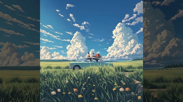 **Летняя поездка под облаками: Гармония лугов** 🌞🌳