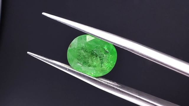 3.05 ct. Гранат Цаворит овал. Место добычи камня - Танзания. 100% природный камень, без облагораживания. Чистота: I1(GIA):Г3 (Xtl; Ftr) Размер: 9,3 х 7,8 х 4,6 мм. №1117