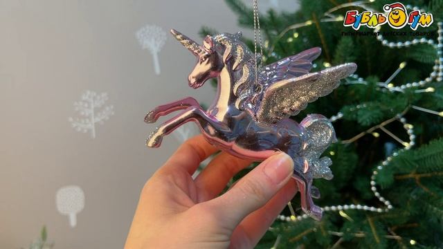 332334 Елочное украшение Аликорн глинцевое розовое 10см