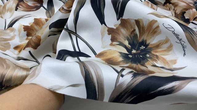 Шёлк молочного цвета с принтом цветы 46515