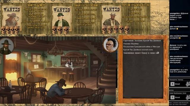 #FateCore, #Fate: accelerated edition, #FAE, #Fate максимальное ускорение #вестерн https://www.donationalerts.com/r/maksnotik Донатная палочно-поощрительная система: 50р: Жетон судьбы конкретному персонажу: персонаж получает Жетон судьбы, который может использовать для активации аспекта(поверьте это очень полезно) 200р Драматическая (крокодилья) фишка, выдается мастеру для навязывания "крупных последствий" игрокам(В общем, эта фишка сделает их жизнь сложнее, но увлекательней и, надеюсь, драматичнее). Участники Лешка - Уайт Безбожник Агиль - Френк Поджигатель O MY GOD - Змея Джо МаксНотик - Мастер