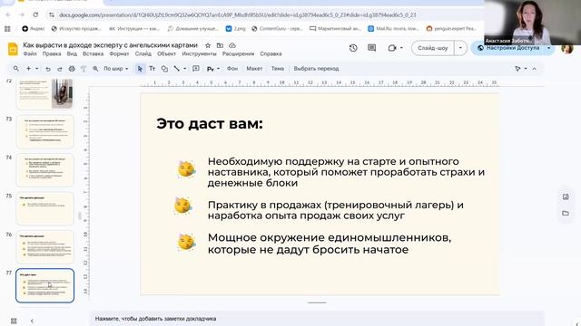 На днях мы провели невероятно мощный вебинар с глубокими разборами! В первом разборе говорили о деньгах: • как выйти на доход от 300 000 рублей и выше, • какие внутренние блоки мешают этому, • и что делать, чтобы результат закрепился. Во втором — о проявленности и силе: • как разрешить себе быть видимой, • как принять внутреннюю силу, • и, наконец, использовать её в деле. Эфир получился настолько трансформационным, что я даже забыла выдать вам подарки! А это значит, что прямо сейчас у вас есть возможность получить: Карту активации клиентов — инструмент, который запускает поток клиентов в ваш проект. Индивидуальную схему-разбор — пошаговый план «сам себе коуч», чтобы самостоятельно проработать вашу ситуацию. Чтобы забрать подарки — заполните анкету по ссылке: https://forms.yandex.ru/cloud/68af0b0ae010db0c46d322ab/ ______________ Приходите на открытые разборы в тг канале: 👉 https://t.me/gravityaz Комьюнити сильных экспертов: https://t.me/+fcmNG-PGYfA5NDcy Написать мне в телеграм https://t.me/nastyazabotnyuk