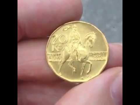 На монете 20 крон изображен святой Вацлав. Вацлав был Чешским князем, построившего церковь святого Вита в Праге. А так же дружил с немецкими королями. Был харизматичной личностью и вводил христианство в Чехии. События происходили в 10 веке нашей эры.