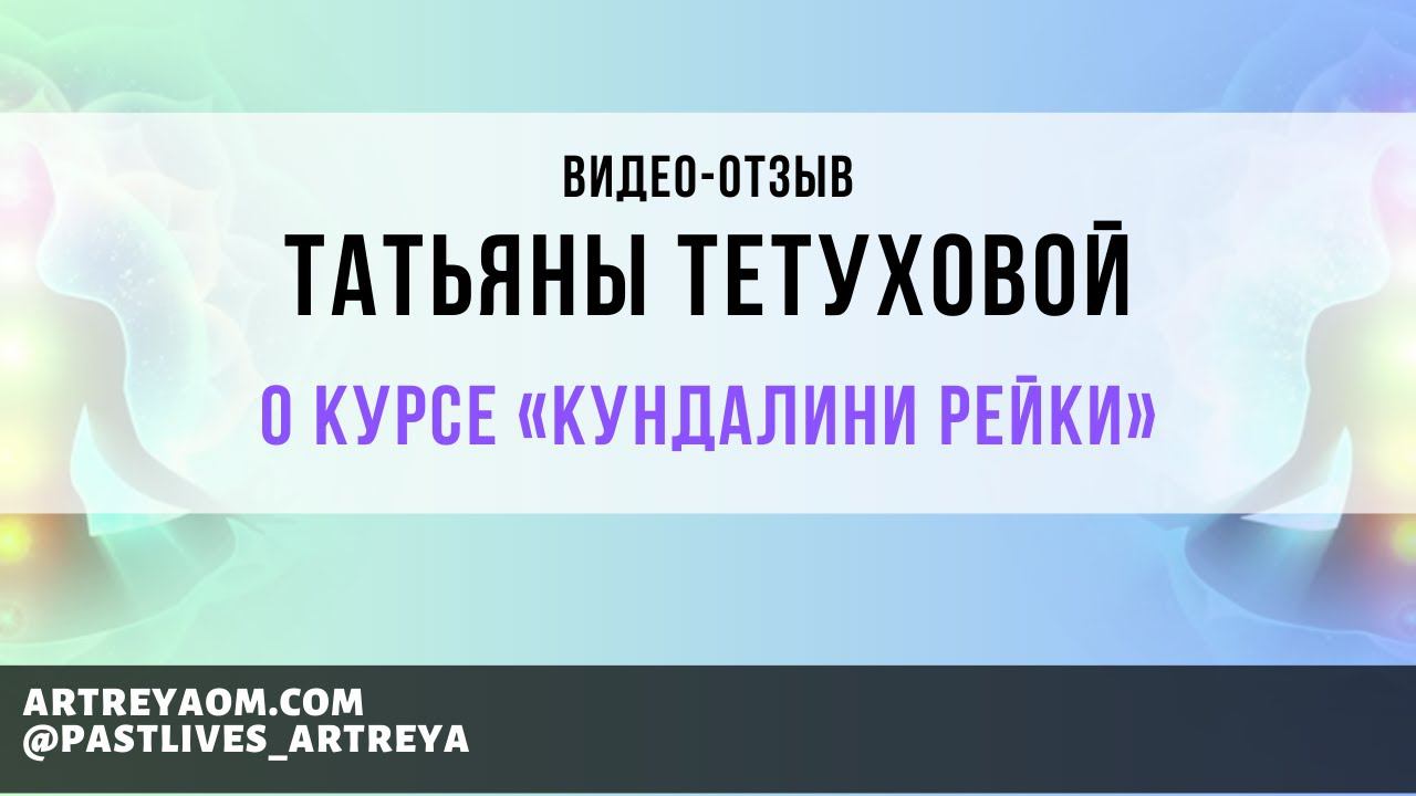 Отзыв Татьяны Тетуховой о курсе «Кундалини Рейки» ★★★★★★★★★★★★★★★ Записаться на сеанс регрессии: https://info.artreyaom.com/zapis_na_seans ✳️ Мои курсы и сеансы: https://taplink.ru/profile/236603/pages/ ⚛️ Отзывы: https://info.artreyaom.com/feedback ★★★★★★★★★★★★★★★ Я в соц. сетях ✳️ Телеграмм канал: https://t.me/artreya_probuzhdenie_dushi Instagram - https://www.instagram.com/pastlives_artreya Facebook - https://www.facebook.com/groups/regressivetherapy/ VK - https://vk.com/mypastlives ★★★★★★★★★★★★★★★ ⚛️ Записи сеансов: https://www.youtube.com/playlist?list=PLCF-gS3z_oZpVotcAAVMWU18xonx6jFq0 ⚛️ О сеансах регрессии: https://www.youtube.com/playlist?list=PLCF-gS3z_oZoaZDyPDDyrkoJpkBj06MYn ⚛️ Медитации: https://www.youtube.com/playlist?list=PLCF-gS3z_oZqpLpDN2YfRsS6Lp_J3S_9Z ⚛️ Мои вебинары: https://www.youtube.com/playlist?list=PLCF-gS3z_oZoKSbK1OV76dgivoBcaOnLe ⚛️ Отзывы: https://www.youtube.com/playlist?list=PLCF-gS3z_oZo4eFWBeMG4Tzbk1ptLHGf9