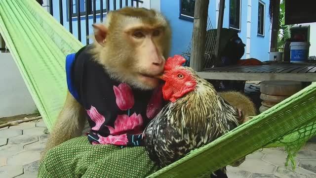 Неразлучные друзья - Обезьянка и Петух