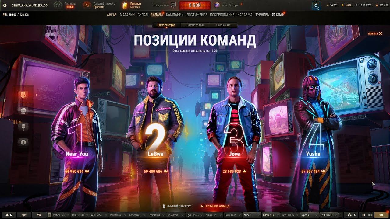 Приветствую всех , Друзья! БИТВА ТАНКОВЫХ БОГОВ + РЕФЕРАЛКА ✦ 5000 ЗОЛОТА - ЗА НОВУЮ ЗАГАДКУ №21 И ЛБЗ ПРИЗЫ ПО 2500 ЗОЛОТА ✦ Принять участие в поддержке канал можно тут : https://www.donationalerts.com/r/y4utel_wot У кого не заработает Алёртс – можете поучаствовать напрямую на карту Альфа : 2200152361997581 Трансляции на TROVO : https://trovo.live/Y4utel_WOT Трансляции на BOOSTY : https://boosty.to/y4utel_wot Трансляция на ВК Плей : https://vkplay.live/y4utel_wot_ РУТУБ : https://rutube.ru/channel/23890938/ Видео на ЯндексДзен : https://zen.yandex.ru/id/6238bcc0d5819570a0ada6c7 Видео в ВК : https://vk.com/video/@id192905357 Общайтесь с нами в группе в контакте : https://vk.com/y4utel_wot Делайте Добро! Присоединяйтесь для общения : 1. ВК(контакт) - сюда https://vk.com/y4utel_wot 2. Дискорд - https://discord.gg/HE5XvyN49G 3. Тимспик - TS-VIP.ru 4. Скайп - https://join.skype.com/invite/eHl5b2BTgbAc 5. В личное сообщение в танках - ник Sergeo22, Y4utel_wot 6. Электронная почта Y4utel_Wot@mail.ru 7. Телеграм канал : Y4utel_wot Если нравятся мои видео или стримы , можете помочь каналу: https://www.donationalerts.com/r/y4utel_wot http://www.donationalerts.com/c/y4utel_wot https://new.donatepay.ru/@1319671 Альфа Банк - 2200152361997581 https://yoomoney.ru/to/410016470457535 Яндекс Деньги - 410016470457535 ГАЗПРОмбанк - 2200010159733495 Пожелания/ заявки отправляйте на электронную почту : Y4utel_wot@mail.ru Теги для продвижения : #Y4utelWot#танки#учительвот