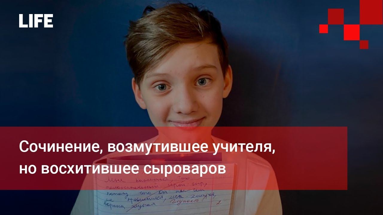 В Москве школьник получил двойку за необычную интерпретацию басни Крылова "Ворона и лисица". В своём сочинении он написал, что положительный герой в произведении — сыр. Мама пятиклассника выложила его работу с отметкой учительницы в соцсети, и парень получил сотни комментариев с поддержкой. Сочинение увидел и сыровар Олег Сирота. Он позвал школьника на экскурсию и подарил четырёхкилограммовую головку сыра. Подробнее: https://t.me/Lshot Подпишитесь на канал Life | Новости - https://goo.gl/7MElrH Смотрите также: Viber - https://viber.com/lifenewsru Телеграм— https://t-do.ru/Lshot ICQ - https://icq.com/chat/AoLEmf1sCS3TP_VTVRU Официальный сайт http://Life.ru/ ➤Life в Vk - https://vk.com/life ➤Life в Twitter - https://twitter.com/lifenews_ru ➤Life в OK.ru - https://ok.ru/lifenews ➤Life в Facebook - https://www.facebook.com/lifenews.ru Life – первый по срочным новостям! Эксклюзивные видео по самым главным темам дня, прямые включения с мест событий, топовые ньюсмейкеры в студии – главные особенности Life