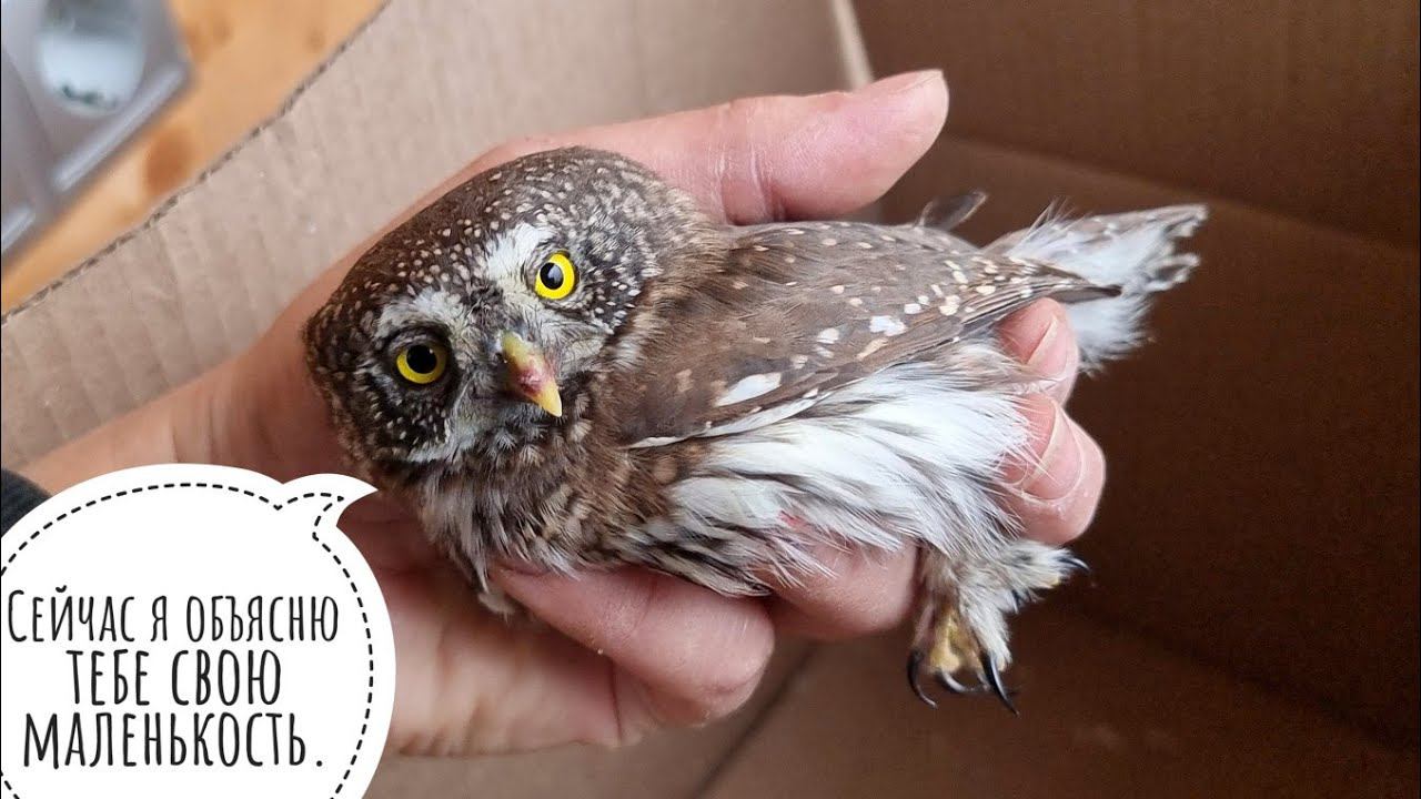 Воробьиный сычик - самая маленькая сова Евразии. Вес взрослого сычика примерно 50 - 80 грамм. Для сравнения, вес домового сыча, типа Лучика и Кутуши, в среднем 170 - 210 грамм, а вес сплюшек около 90 - 100 грамм. При всей такой маленькости воробиные сычики никуда не улетают на зиму, живут в том числе и в тайге, спокойно зимуют и переносят низкие температуры. В неволе эти нано совы живут крайне плохо и очень недолго. Это связано с особенностями их рациона и необходимостью зимовки в "естественных" условиях, то есть, на улице. Так же, из-за быстрого обмена веществ, у сычиков стремительно может развиться болезнь, и чаще всего просто не получается вовремя птице помочь. У воробьиного сычика, который к нам приехал, было сломано правое крыло. Он прошёл лечение у ветеринара Марии Маркиной. Крыло срослось, но полноценно летать сова уже не будет. Сычик приехал к нам на постоянное место жительства, и теперь его задача привыкнуть, освоиться и жить. #owl #owlhouse #viral #zen
