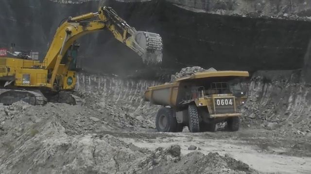 Мне нравится эта машина - экскаватор Komatsu PC2000, загружающий вскрышные породы в самосвалы HD785
