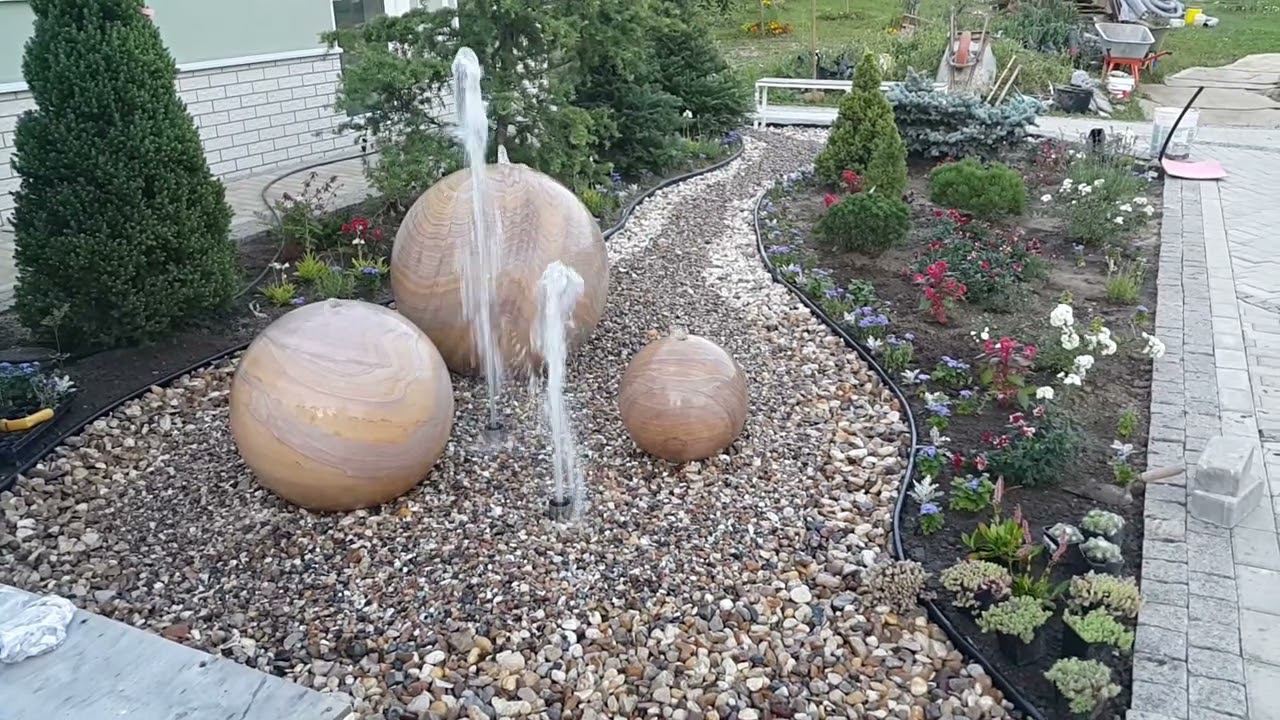 Поступили на склад фонтаны, вазы и шары из индийского песчаника радуга.