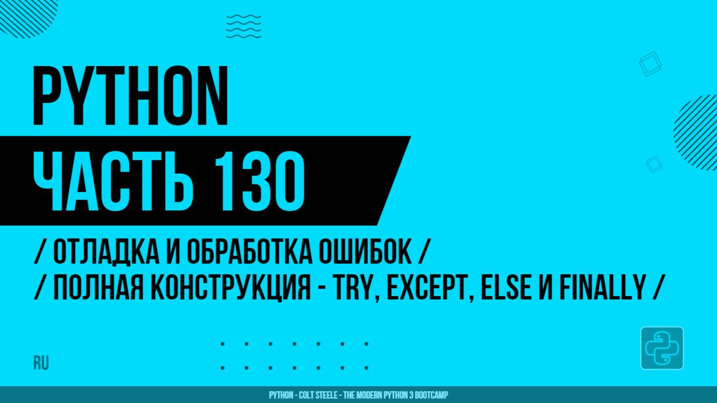 Python - 130 - Отладка и обработка ошибок - Полная конструкция - try, except, else и finally
