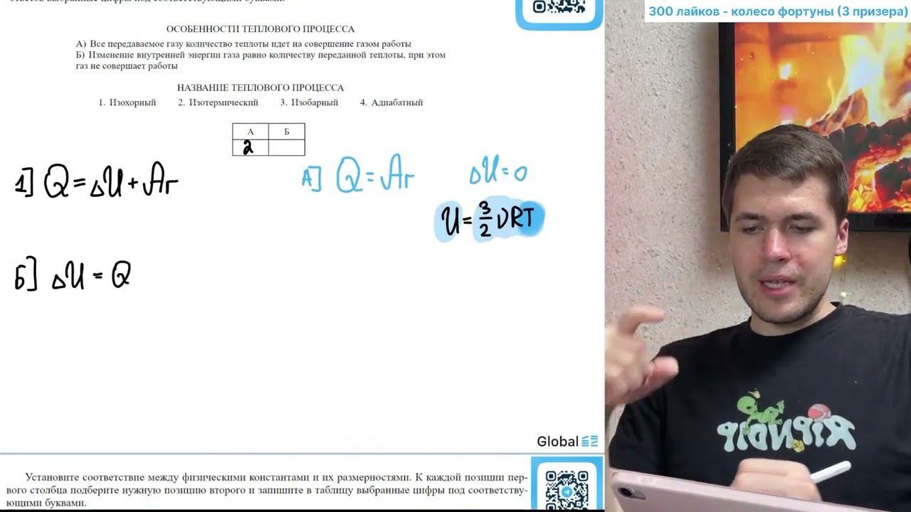 Используя первый закон термодинамики, установите соответствие между особенностями теплового - №