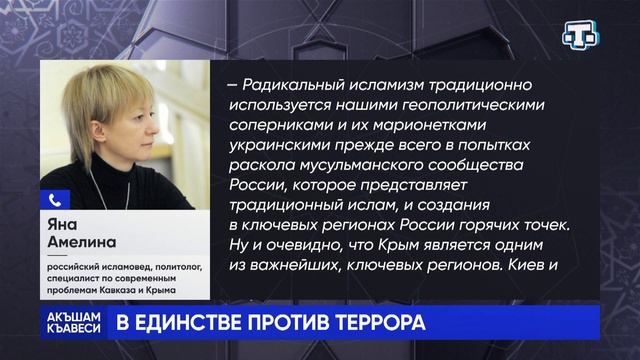 Третье сентября — День солидарности в борьбе с терроризмом. 19 лет назад террористы захватили более тысячи человек в школе в Беслане. 314 заложников погибли, 186 из них дети. Сегодня террористическая угроза исходит, в первую очередь, от киевского режима. В Крыму неонацисты пытаются в своих преступных целях использовать секты и запрещенные организации. С помощью вбросов и фейков стараются расшатать межнациональный мир на полуострове. Как противостоять этому злу? Серьезную тему за чашкой кофе обсуждаем с нашими гостями в ток-шоу «Акъшам къавеси». У нас в студии: - Альберт Куршутов, врио министра внутренней политики, информации и связи Республики Крым; - Чингиз Якубов, депутат Государственного совета Республики Крым, ректор КИПУ им. Февзи Якубова - Айдер Исмаилов, заместитель Муфтия Республики Крым и г. Севастополя - Гульнара Муртазаева, директор школы №44, депутат Симферопольского горсовета #АкъшамКъавеси #Миллет