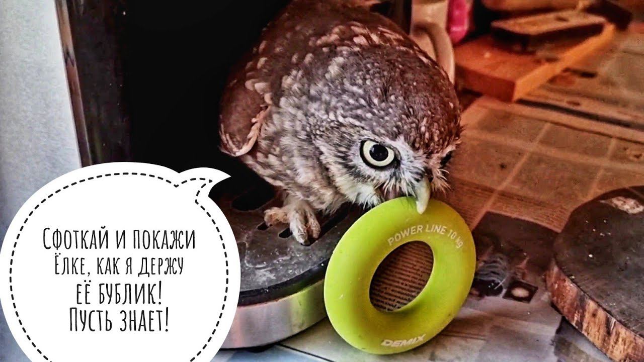 Маленькая кусачая сова ждёт кофи и примеряет бублик большой совы! Кажется, я спасла собак от кота