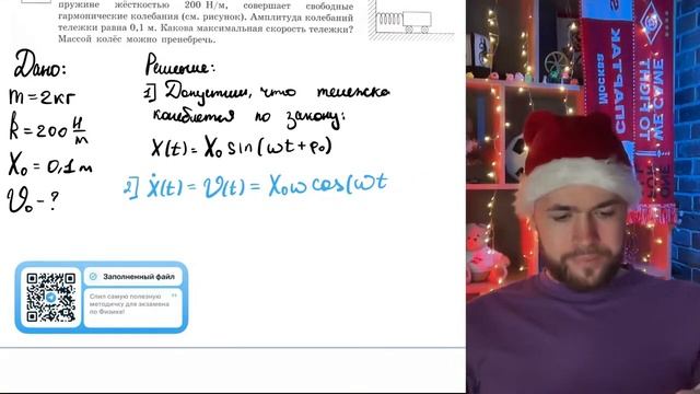 Тележка массой 2 кг, прикреплённая к горизонтальной пружине жёсткостью 200 Н/м, совершает - №21280
