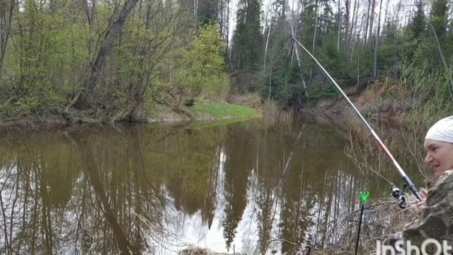Нина на 200 С удочкой на речку Шистом.