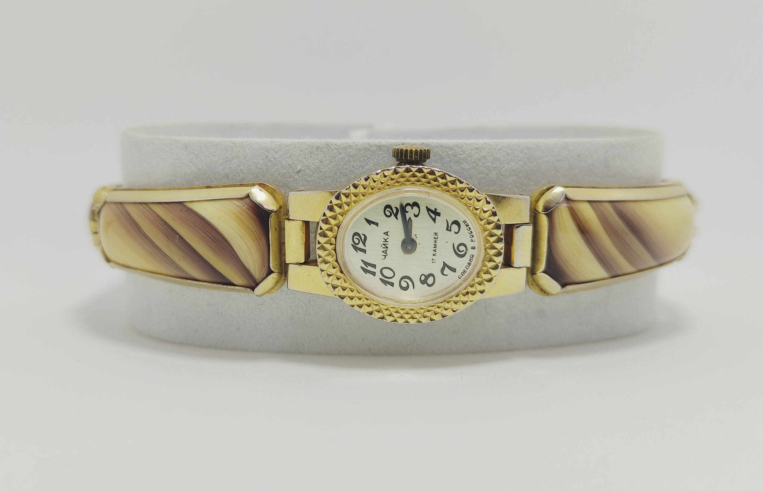 Год выпуска: 1980-е начало 1990-х Тип часов: Механические 17 камней Материал корпуса и браслета: Позолота + Натуральный камень Производство: Россия