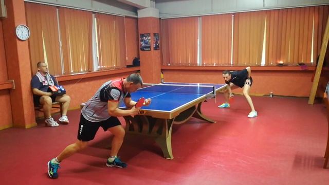 Среща от редовния сезон на Северозападната лига по тенис на маса 2019 / 2020 Марио Сърбинов "Аргогруп" срещу Александър Стоянов "Белун 2" (в сиво) 1:3.
