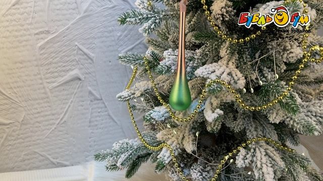 331684 Елочное украшение Капля матовая розово-мятная стекло 15см