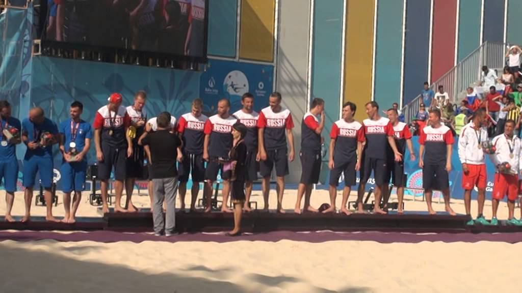 Награждение сборной России по пляжному футболу на Европейских играх в Баку