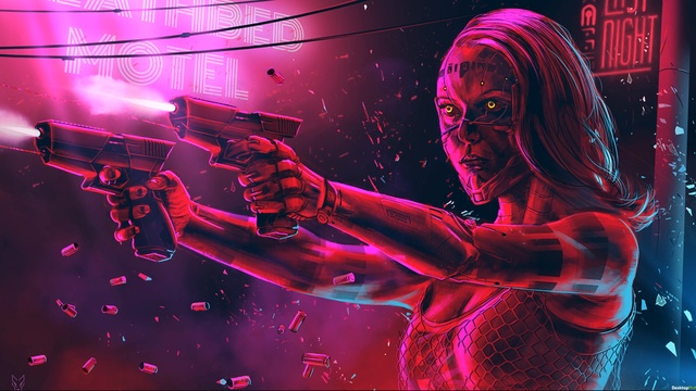 Девушка наёмница с пушками - Киберпанк - Живые обои
