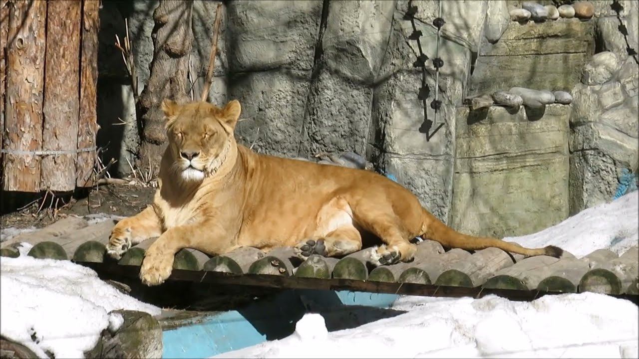 Львица Нейтири отдыхает и греется на весеннем солнышке 05.04.2023