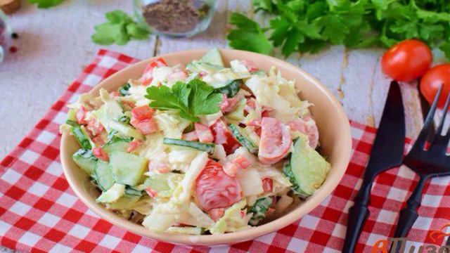 Салат с пекинской капустой болгарским перцем и помидорами