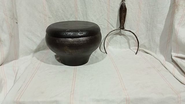 Чугунок чугунный на 4 литра + Крышка -СКОВОРОДА Чугунная + Ухват кованый СССР