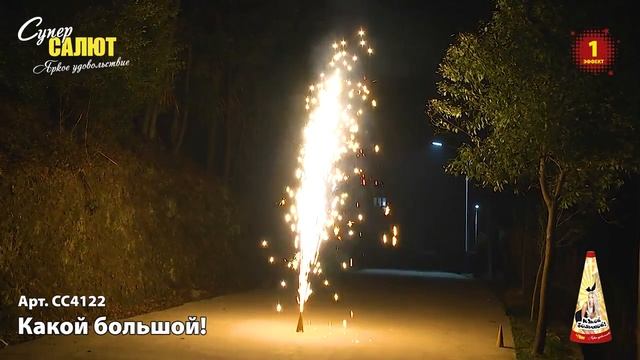 Фонтан Какой большой СС4122 https://spb-salut.ru/products/kakoy-bolshoy Время работы до 60 сек. Высота подъема до 5 м. Эффекты: мощный поток серебряных искр. Фасовка: 1/8/4 SPB SALUT - пиротехническая компания в Санкт-Петербурге. Основные направления деятельности: 1) Розничная торговля пиротехникой (офлайн магазины, интернет-магазин spb-salut.ru); 2) Организация и проведение профессиональных фейерверков; 3) Оптовая торговля пиротехникой по всей России. Адреса магазинов: 1) г. Санкт-Петербург, ул. Тележная, д. 15, лит. Б (вход с ул. Кременчугская), м. Площадь Восстания. Ежедневно с 10:00 до 22:00 2) г. Санкт-Петербург, пр. Полюстровский, д. 28Б, м. Площадь Ленина. Ежедневно с 10:00 до 22:00 Благодаря большому опыту, наши специалисты с легкостью создадут для Вас уникальное фейерверк шоу, которое сделает любой Ваш праздник незабываемым, будь то день рождение, свадьба, корпоратив или фейерверк городского масштаба! Почта: info@spb-salut.ru Сайт: https://spb-salut.ru Тел.: +7(812)242-82-24; +7(952)287-80-85.
