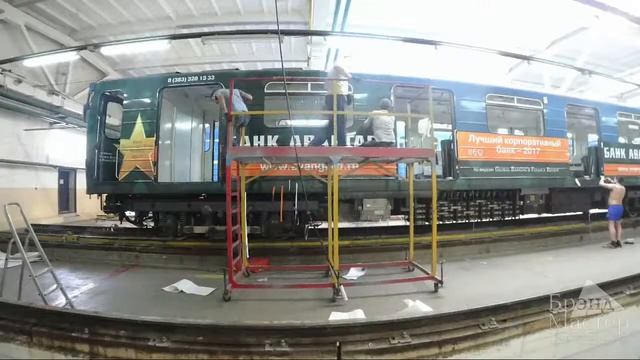 Таймлапс - монтажа рекламного изображения на метропоез в г. Новосибирск.