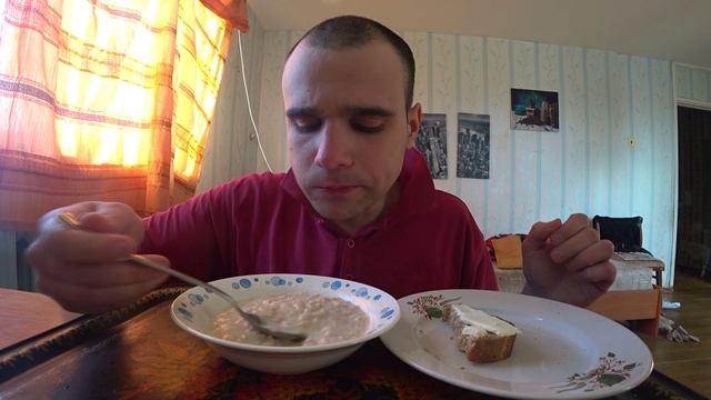 МУКБАНГ ОВСЯНАЯ КАША и БУТЕРБРОДХЛЕБ с МАСЛОМ ОБЖОР Еда на камеру УЖИН