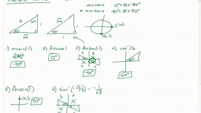 Inverse Trigonometric Functions - Principal Values - HW Review