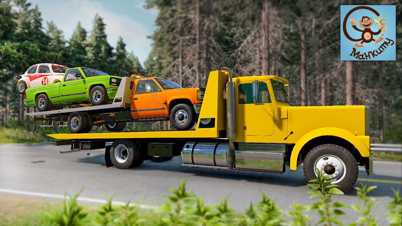 Мультик про машинки. Желтый эвакуатор, зелёный пикап и машинка жук строят пирамиду. Манкиту