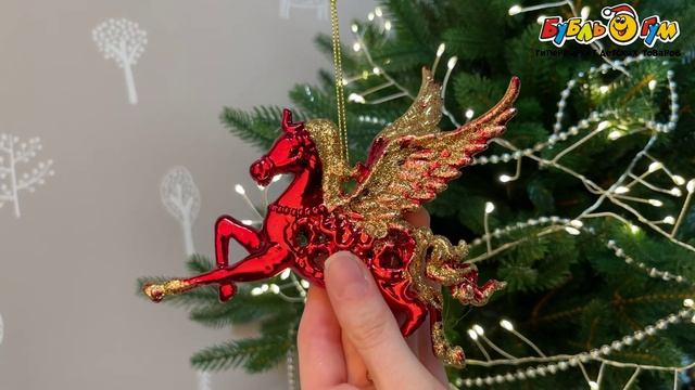 332316 Украшение елочное Пегас с золотым глиттером глянцевый красный 12см