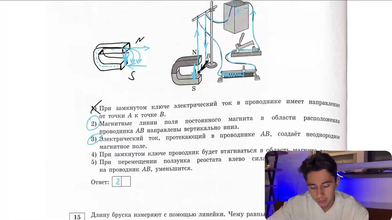 Электрическая схема содержит источник тока, проводник АВ, ключ и реостат Проводник АВ - №28129