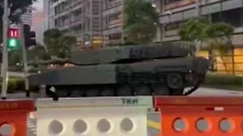 Танк Leopard 2SG Сингапура столкнулся со светофором