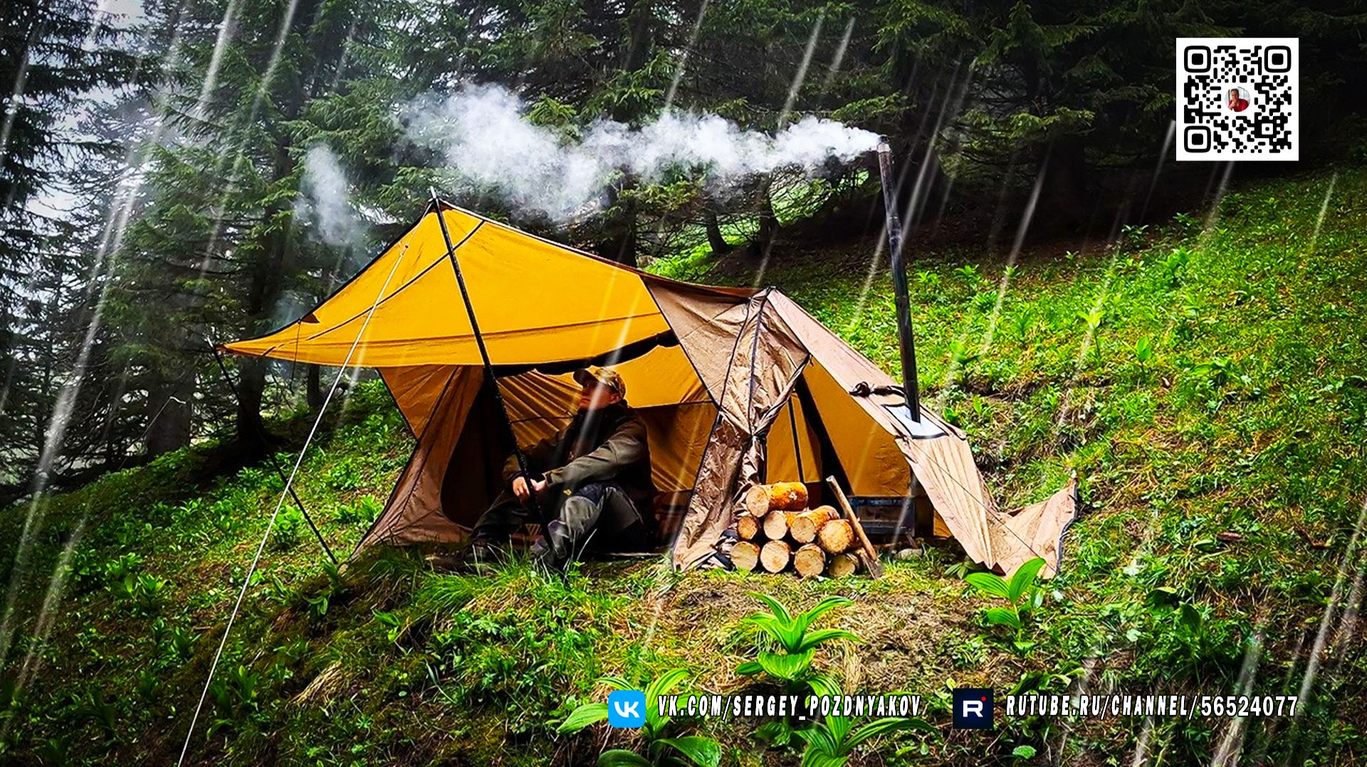 Тёплая и сухая палатка под проливным дождем. Одиночное выживание в дикой природе