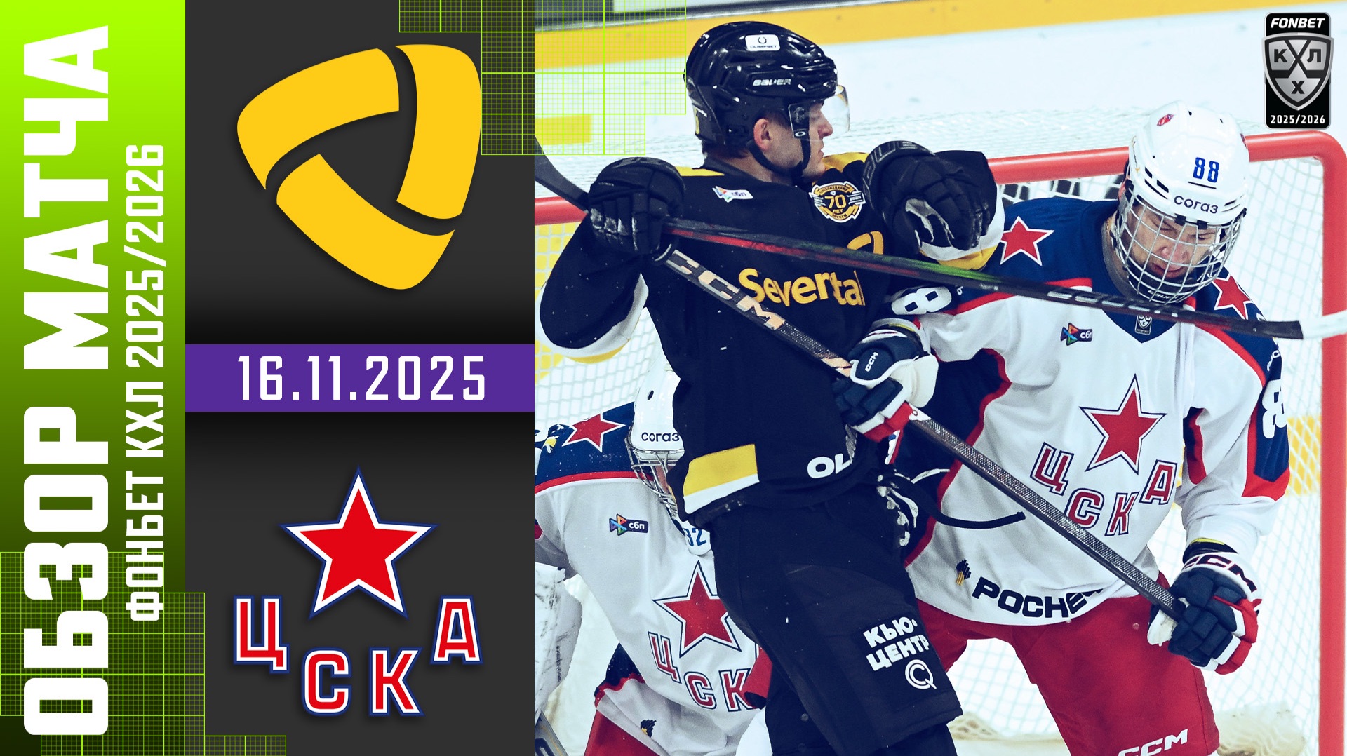 СЕВЕРСТАЛЬ – ЦСКА | Обзор матча Фонбет КХЛ сезон 2025/2026 | 16.11.2025